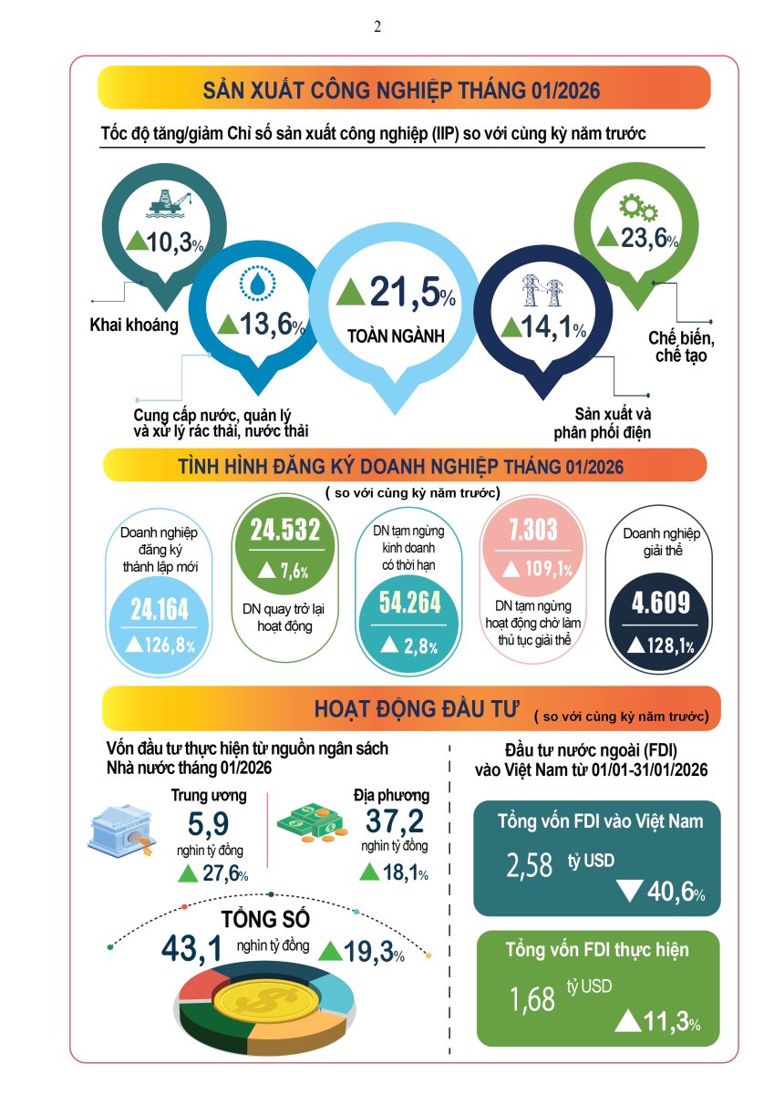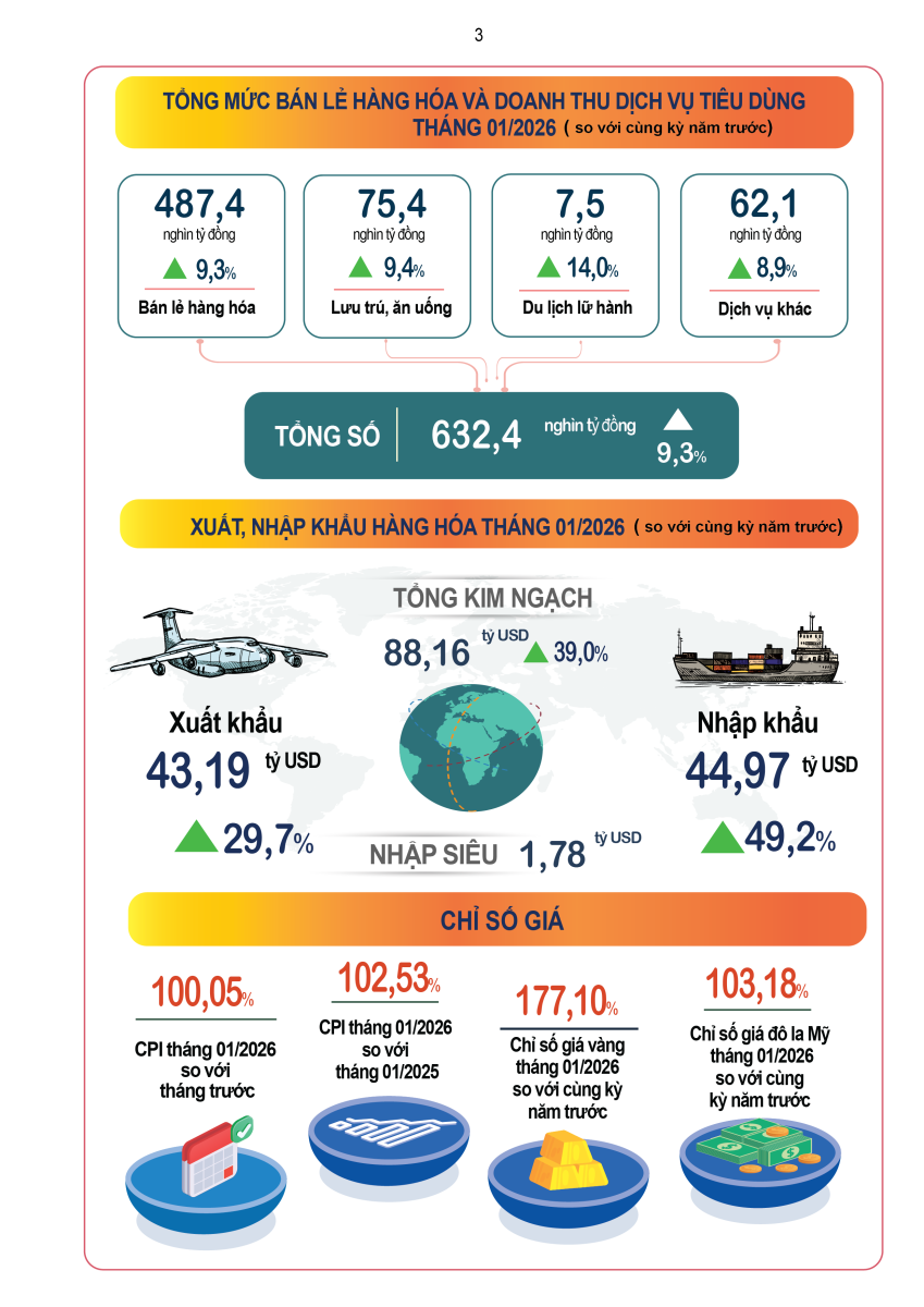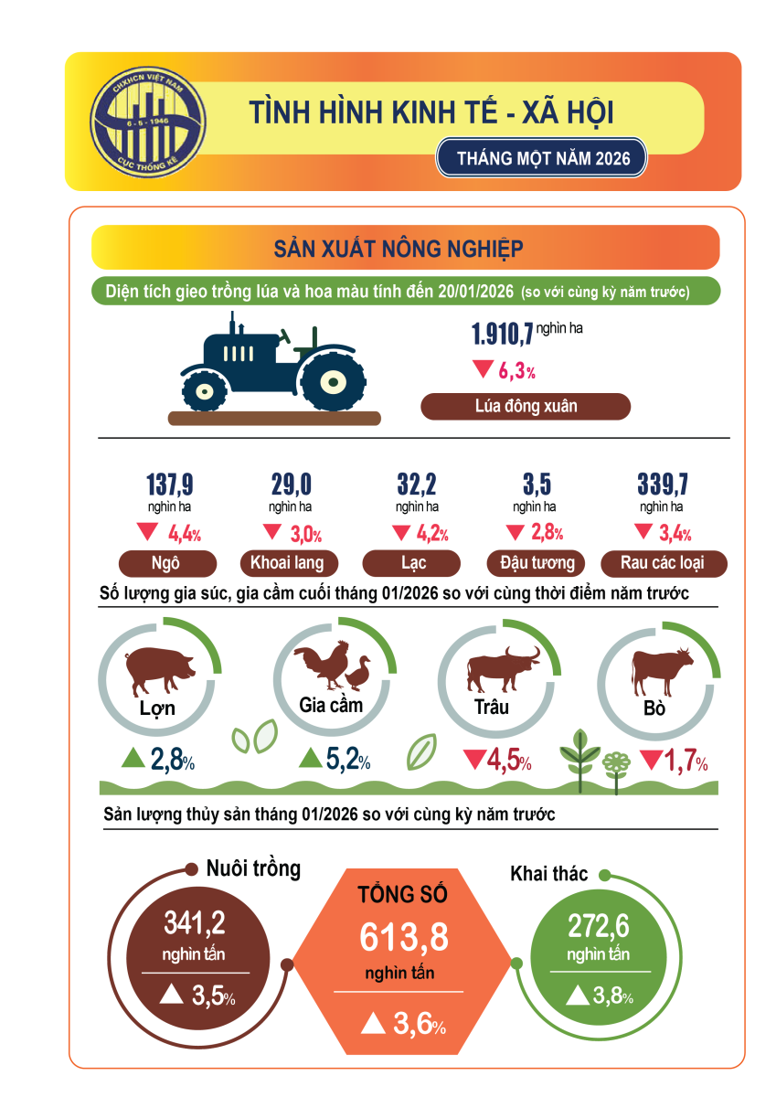 Tình hình kinh tế - xã hội tháng Một năm 2026 của nước ta đạt được kết qủa toàn diện trên nhiều ngành, lĩnh vực, kinh tế vĩ mô ổn định, lạm phát trong tầm kiểm soát.